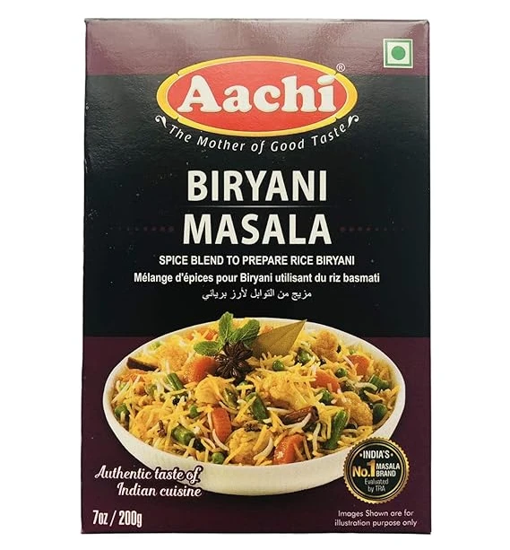 Aachi Biryani Masala is a rich and aromatic spice blend crafted to bring out the authentic flavors of traditional biryani. Made from a perfect mix of premium spices such as coriander, cumin, black pepper, cardamom, cloves, cinnamon, star anise, bay leaves, nutmeg, and fennel, this masala adds depth, fragrance, and a balanced heat to biryani.