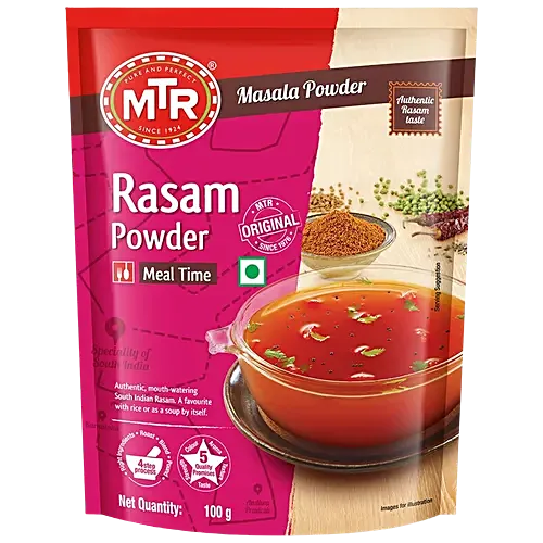 MTR Madras Rasam Powder is an authentic South Indian spice blend that brings the traditional flavors of Madras-style rasam to your home. Made with a mix of aromatic spices such as coriander, cumin, red chili, black pepper, and fenugreek, this powder offers a perfect balance of tangy, spicy, and savory flavors. It is ideal for preparing a comforting and flavorful rasam, which can be enjoyed as a soup or paired with rice.