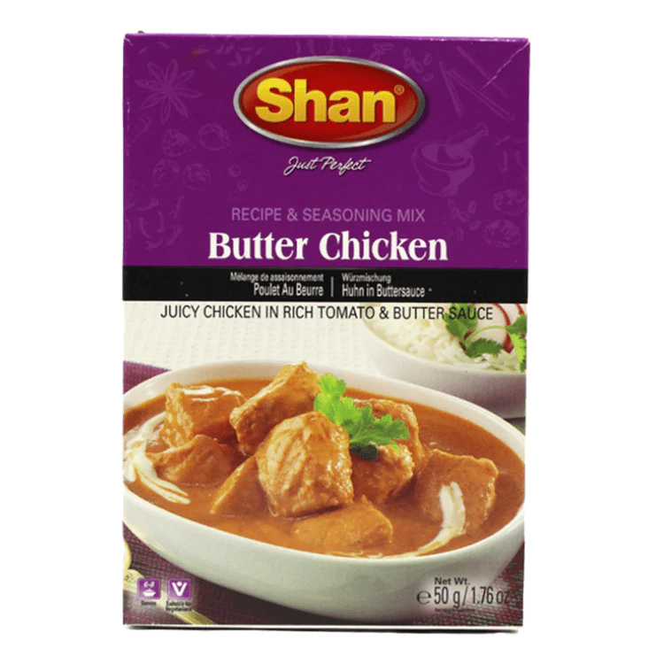 Shan Butter Chicken Masala is a premium spice blend crafted to bring the authentic taste of traditional butter chicken to your home. This carefully selected mix of spices enhances the richness of the creamy, tomato-based curry, offering a perfect balance of flavors.